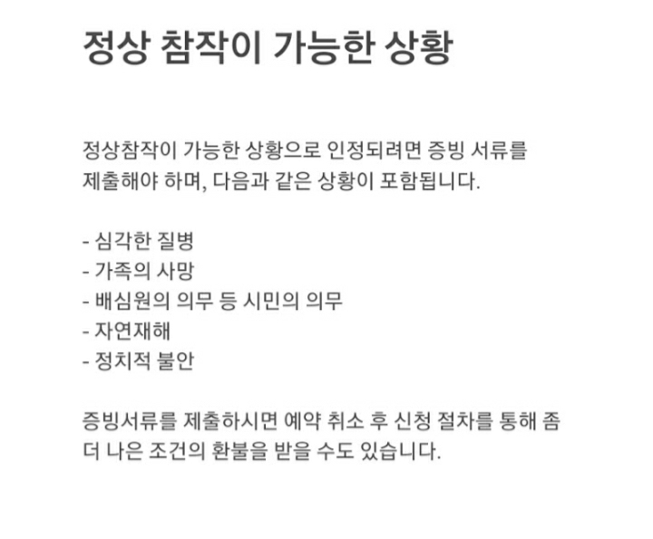 예약시에는 30일 전 취소 시 전액환불 이라는 문구만 보인다.