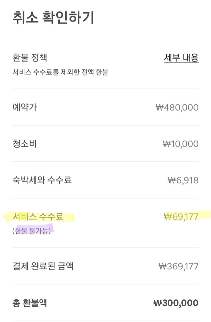 만약 내가 수수료 89348원 짜리 숙소를 먼저 취소했다면